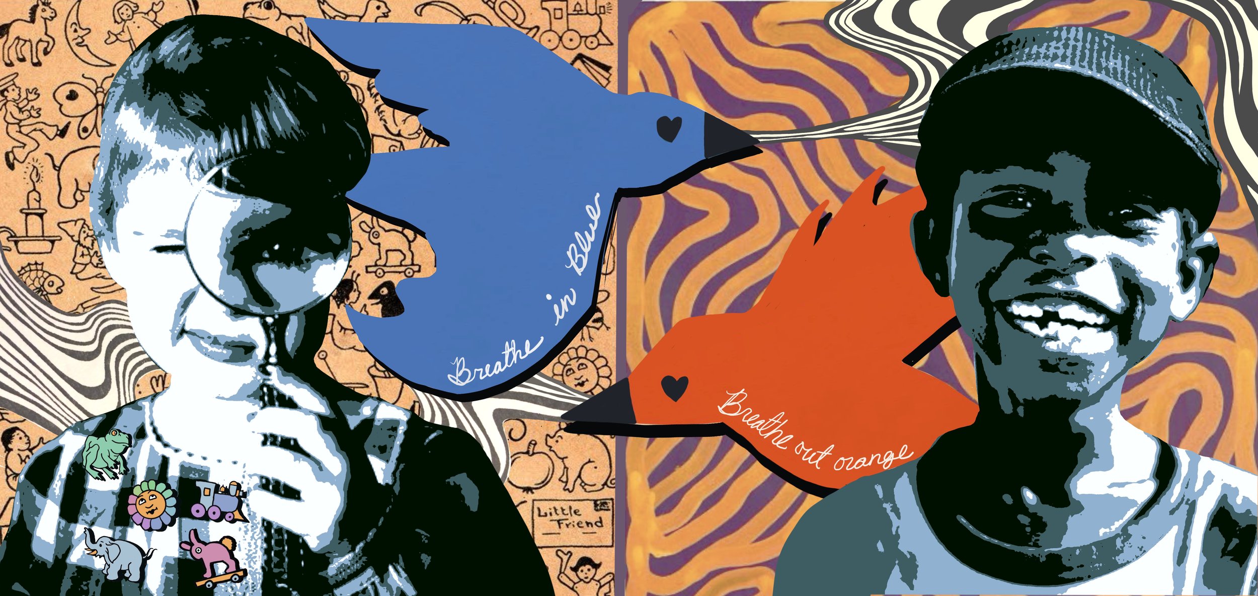 These color-coded cues teach a simple breathing technique in a way that's both soothing and memorable. The birds also visually connect the two interactive sides of the mural, guiding the viewer’s gaze and breath through the scene.